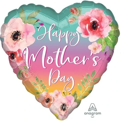 Shower mum in beautiful balloons this Mother's day Heart shaped balloon with a 'Happy Mother's Day' message and an ombre floral hearts print Simply pair with complimentary foil balloons to create a stunning balloon bouquet gift for mum Measures: 18 Inch Suitable for helium inflation only, Manufacturer: Amscan