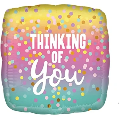 Pastel Thinking of You square foil balloon Measures: 18” Suitable for helium inflation only Foil balloons filled with helium will last approximately 3 days, Manufacturer: Amscan