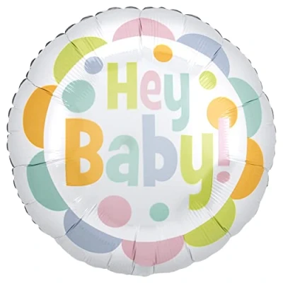 Hey Baby Round Foil Balloon Measures: 18" (45cm) when inflated Inflate With Helium! Will arrive flat ready to inflate A great baby shower party decoration, Manufacturer: Amscan