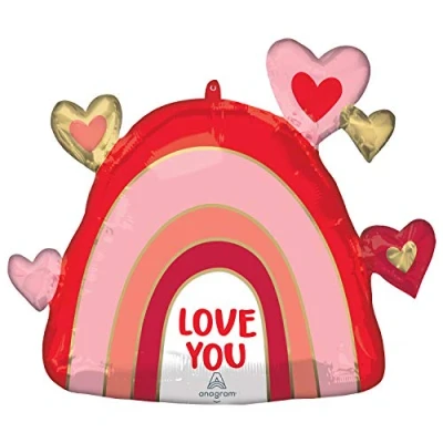 Spruce up your party décor with these balloons. These balloons feature a rainbow shaped in assorted red and pink color with red "Love You" text in white background and with attached gold, red, and pink heart design. Use these heart foil balloons to create an adorable Valentine's decoration. These balloons are made of high-quality foil. Each balloon measures 26" width x 23 height. These balloons are perfect for Valentine's party and it is perfect when you match it with other Valentine's party supplies and decorations., Manufacturer: Amscan