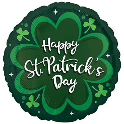 Decorate your St Patrick's day celebration with this fun foil balloon. Green round balloon with a Happy St Patrick's Day message and shamrock print finish. Measures: 18" Suitable for helium inflation only. Foil balloons filled with helium will last approximately 3 days., Manufacturer: Amscan International