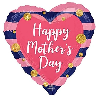 Shower mum in beautiful balloons this Mother's day Heart shaped balloon with a 'Happy Mother's Day' message and a navy blue and pink finish Simply pair with complimentary foil balloons to create a stunning balloon bouquet gift for mum Measures: 18 Inch Suitable for helium inflation only, Manufacturer: Amscan