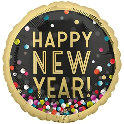 Bring in the new year in style with fun balloons! Black foil balloon with a gold trim, a 'Happy New Year!' message and finished with a colourful, confetti print. Simply pair with complimentary foil balloons to create a stunning balloon bouquet. Measures: 28" Suitable for helium inflation only., Manufacturer: Amscan