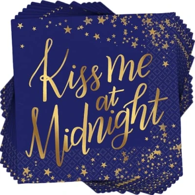 Bring in the new year with dazzling tableware, decorations and balloons! Midnight blue luncheon napkins with a stylish hot stamped gold star print. Thickness: 2ply Size: 25cm Pack of 16, Manufacturer: amscan