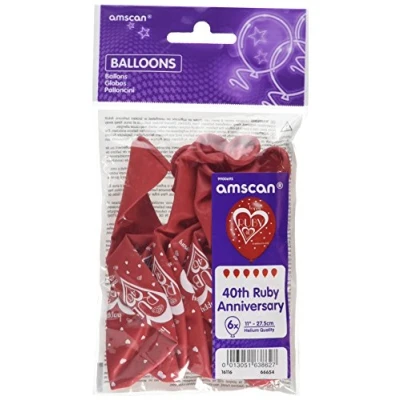 Package includes: 6 x red latex balloon Featuring red latex balloon with white print "Happy Ruby 40 Anniversary" text and has hearts design. Create a lovely annoiversary party decoration with this latex balloon. Perfect for anniversary party Spice up your decor at any upcoming celebration with this balloons!