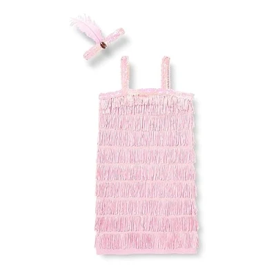 Package includes: 1 x costume age 6-8 years Product features a pretty pink fringe dress with sequin trim to neckline and a sweet sequin headband with pink feather accent. Perfect for halloween and other themed parties. Made of high quality material, Manufacturer: amscan