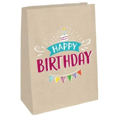 amscan 9904396 Happy Birthday Paper Bags, Pack of 4, Size 14.7 x 21 cm, with Stickers, Multi Colour, Birthday, Cake, Garland, Gift Bag, Packaging, Surprise