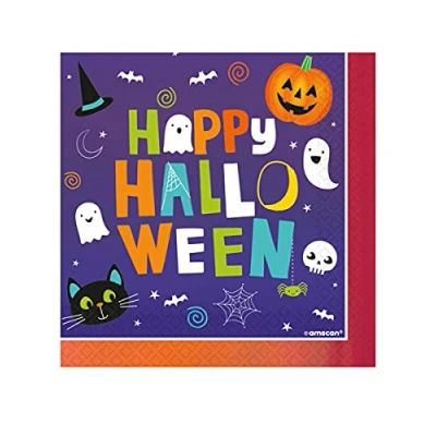 Our Hallo-ween Friends party range is family friendly and super-cute! Purple luncheon napkins featuring fun pumpkins, kitty's, spiderwebs and more! Thickness: 2ply Size: 33cm Pack of 16, Manufacturer: Amscan