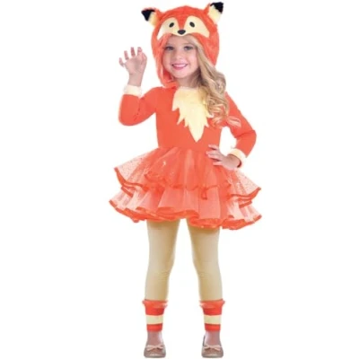Amscan 9908457 Girls Orange Fox Hooded Dress World Book Day Fancy Costume Age: 10 12 Yrs