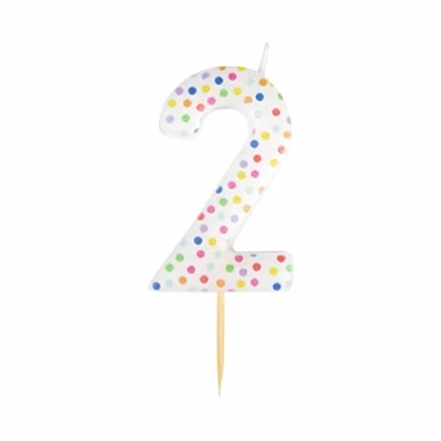 Bright, fresh and on trend numerical cake candle with a dotty finish. Ideal for all birthdays, anniversaries or pair the numbers together for those all important milestone birthdays. The candles have a pick that simply presses into the cake, no need for plastic holders. Candle size: 6cm tall, 8.5cm with pick., Manufacturer: Amscan