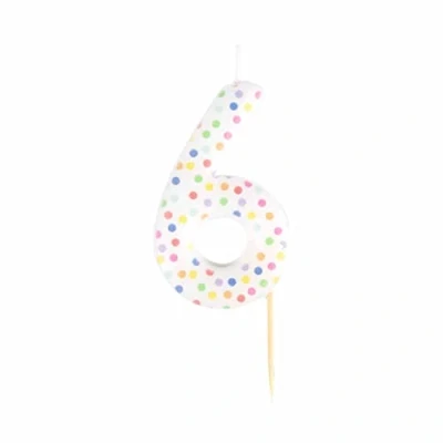 Bright, fresh and on trend numerical cake candle with a dotty finish. Ideal for all birthdays, anniversaries or pair the numbers together for those all important milestone birthdays. The candles have a pick that simply presses into the cake, no need for plastic holders. Candle size: 6cm tall, 8.5cm with pick., Manufacturer: Amscan