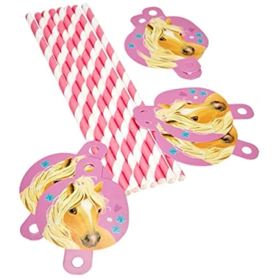 Your child loves horses and ponies and wants to throw his next party to this motto? Then the Pretty Pony straws are just the right thing for you The set contains 8 pink and white paper straws to which beautiful pony motifs made of cardboard are attached Let your child and their friends sip lemonade, juice and water out of these straws, because it makes the drinks taste even better No matter what the occasion these Amscan straws are going to the table, they are sure to be a real highlight at the horse party Other beautiful decorative items and party accessories can be found in our brand shop. Click on the brand name Amscan below the product title