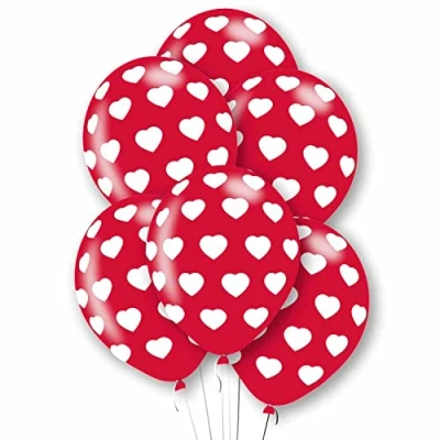 AmazonRed latex balloons with a white love hearts print. Simply pair with complimentary foil balloons to create a stunning balloon bouquet. Suitable for helium or air inflation. Each balloon measures: 11" 6 pack, Manufacturer: Amscan