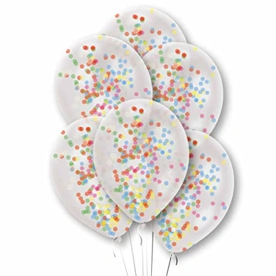 Clear latex balloons already filled with rainbow confetti. Simply pair with complimentary foil balloons to create a stunning balloon bouquet. Each measures: 11" Pack of 6 Suitable for helium or air inflation., Manufacturer: Amscan