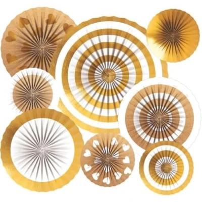 8-piece decoration set for weddings, birthdays and much more Box contents include 8 decorative fans in gold, bronze and white The decorative fans are decorated with different designs You can hang it on the ceiling as well as on the wall Let your creativity run wild and create an unforgettable party decoration, Manufacturer: Amscan