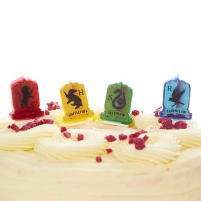 Throw the ultimate birthday party with our officially licensed Hogwarts party range. Assorted cake candles featuring the Hogwarts house badges Pack of 4 Picks included Size: 2.2cm x 3cm