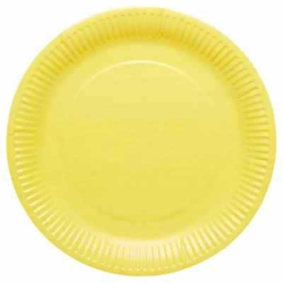 Buttercup yellow party plates, part of our new eco-friendly party tableware range. Made from sustainably sourced paper. Plastic free coating. Pack of 8 Recyclable and FSC certified., Manufacturer: Amscan