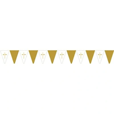 Beautiful botanical celebration bunting ideal for your religious celebration Re-usable bunting with gold crosses and plain gold pennants. Length: 2.75 m Great for walls, windows, or doorways. Material: Plastic, Manufacturer: Amscan