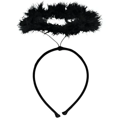Add those finishing touches to your Halloween costume with spooky accessories! Ideal for a black angel dress up theme Faux feathers make up the halo all set on a fabric headband Will fit most adults Once you’re done with this fun costume accessory, please consider re-gifting or giving it to charity to give it a new life., Manufacturer: Amscan
