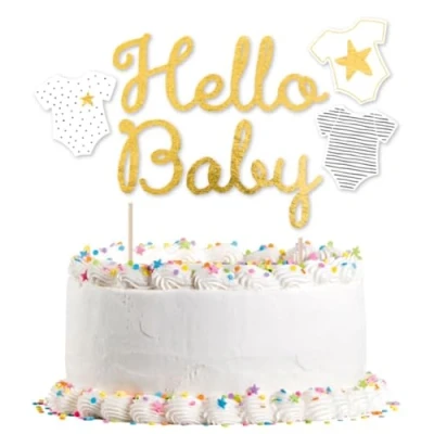 Hello Baby cake decoration for cake decoration at parties and birth Gender-neutral design; size: 21 x 18 cm Material: coloured printed cardboard, wood Cleanly shrink-wrapped packaging Manufacturer: amscan, Manufacturer: AMSCAN