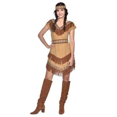 Native Indian style womens dress up Long tassled dress with adjustable belt 2 piece set Perfect for hen parties, everyday fancy dress, Halloween and more