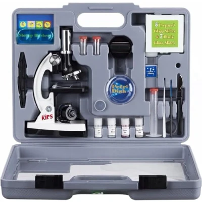 AmScope 52 pc Kids Microscope Science Kit, 120X 1200X Compound Set with Slides and Accessories in Storage Carrying Case M30 ABS KT2 W White