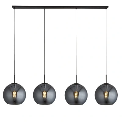 The Amsterdam 4 light bar pendant features a matt black finish and large smoked glass rounded shades with an open base. The bar pendant allows you to adjust the height to suit your needs and is also dimmable. This would be a great addition in a kitchen or dining room space in a modern home.