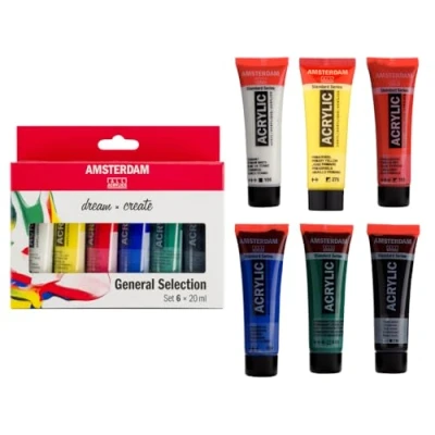 Amsterdam Standard Series Acrylic Paint Set for Beginners Color Mixing (6 x 20 ml Tubes) Basic Selection