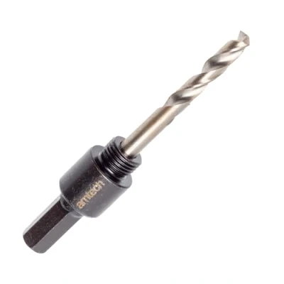 COMPATIBILITY: Designed to be compatible with Amtech Bi-metal holesaws ranging from 14mm to 30mm, providing flexibility for various drilling tasks. EASILY ATTACHABLE: The hex arbour fits securely into drill chucks between 3/8 inch and 1/2 inch, ensuring a stable and efficient connection during operation. INCLUDES PILOT DRILL BIT: Comes complete with a removable 6mm pilot hole drill bit, enabling precise and accurate starts for clean holes. VERSATILE USAGE: Ideal for use with different materials, including wood, plastic, and metal, making it a reliable choice for various DIY and professional projects. DURABLE CONSTRUCTION: Engineered for long-lasting performance, this arbour is built to withstand the demands of regular use.
