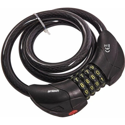 Amtech 900mm x 12mm Security Cable Lock with Built in LED Combination, T1835, Black