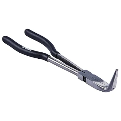 DURABLE: This 90 degree bent nose plier is made from drop forged, heat treated steel for durability SAFE TO USE: It has non-slip matt grip handles for added safety IDEAL FOR CONFINED SPACES: The plier's long nose and 90 bend makes it ideal for use when space or access is limited SIZE: Approx. 11" (280mm) LIGHTWEIGHT DESIGN: Easy to store, making it a practical addition to any toolbox., Weight: 0.5291094288 pounds, Manufacturer: DK Tools LTD