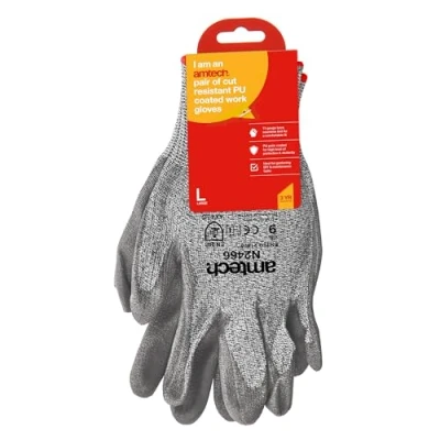 HIGHLY PROTECTIVE GLOVES: These gloves feature a Level C cut resistant and PU coated palms to protect your hands when handling knives, blades, and other sharp objects. They’re ideal for gardening, DIY, and general maintenance around the home. DURABLE: The gloves are made from synthetic yarn for long lasting use that allows you to work with peace of mind. COMFORTABLE: The 13 gauge lycra seamless knit is comfortable against skin, while the elasticated wrist ensures a secure fit for added confidence while you work. 3 YEAR WARRANTY: We work hard to make sure our tools are reliable for any task. That’s why all our hand tools are backed by a three year product replacement warranty. DIY KNOW HOW: At Amtech, we want to improve every home and life by making DIY a doddle for every generation and skill level with tools and expertise that you can rely on.