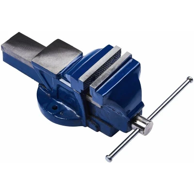 ManoManoGeneral description Heavy duty cast iron body with hardened jaws, designed for durability and strength. This bench vice features a large anvil for added functionality and a baked enamel finish for enhanced protection against wear and tear. It includes hole fixings for direct mounting on your work area, ensuring stability during use. Technical specifications Material: Cast iron Finish: Baked enamel Jaws: Hardened Anvil: Large