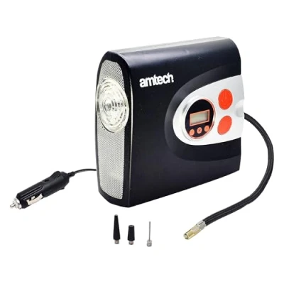 Amtech Digital Tyre Inflator Air Compressor and Car Pump for Quick Inflation, Easy to Use, Portable, Electric with LED Light, Essential 3m Cord (12V)
