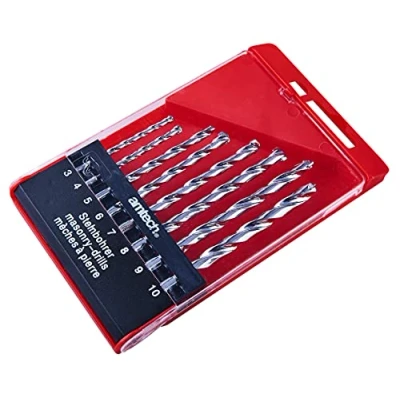 DURABLE: These masonry drill bits are made from heavy duty, cold forged steel with strong tungsten carbide tips for concrete SIZES: Supplied in plastic storage case, the set includes sizes 3mm, 4mm, 5mm, 6mm, 7mm, 8mm, 9mm and 10mm SIZE CAPACITY: 3 mm range ideal for household and trade applications COMPACT DESIGN: Suitable for confined or hard-to-reach spaces PLUMBING APPLICATIONS: Essential for household and trade pipework, Manufacturer: DK Tools
