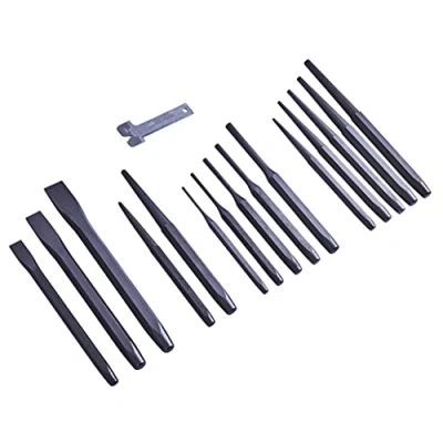 DURABLE: This mechanic's punch and chisel set is made from strong. heat treated, hardened carbon steel VERSATILE: Ideal for automotive and metal work, the set includes 5 pin punches, 5 taper punches, 3 cold chisels, 2 centre punches and 1 chisel punch gauge Contents: 5 pin punches, 5 taper punches, 3 cold chisels, 2 centre punches, 1 chisel punch gauge PRECISION PERFORMANCE: Provides smooth and accurate results PLUMBING APPLICATIONS: Essential for household and trade pipework