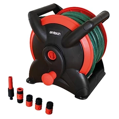 Amtech Garden Hose Reel for Tidy and Organised Storage with Multiple Connectors, Home DIY, Durable Suitable All Seasons, Lightweight Easy to Store (15m)