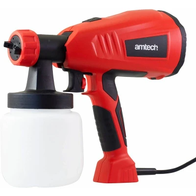 General description By using HVLP (high volume, low pressure) technology, this 400W HVLP paint spray gun reduces spray blow back and increases paint coverage. It features adjustable flow control and spray patterns for better performance. The electric spray gun is ideal for a wide range of DIY, decorating, and painting tasks around the home, garden, and garage. It also comes with a 2.4m electric cable for extra convenience. Technical specifications Power: 400W Cable length: 2.4m Compatibility and accessories Compatible with Amtech V5020 paint spray gun nozzle set Kit Contents: 1 x paint sprayer 1 viscosity measuring cup 1 pc 2.6mm spare nozzle 1 pc 1.0mm spare nozzle 3 pcs filters 1 pc cleaning pin 1 pc cleaning brush Installation Easy to clean with a removable spray head for safer cleaning Usage Ideal for a wide range of DIY, decorating, and painting tasks