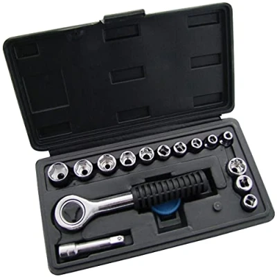 ManoManoGeneral description Set includes a comprehensive collection of tools for various tasks, featuring a 1/4" drive reversible ratchet handle and a selection of metric and imperial sockets. Technical specifications 1 - 1/4" drive reversible ratchet handle 10 - 1/4" drive metric sockets: 4, 5, 6, 7, 8, 9, 10, 11, 12, and 13mm 3 - 1/4" drive imperial sockets: 1/4", 5/16", and 3/8" 1 - 2" (50mm) extension bar 1 - plastic spinner Other information Supplied in a blow moulded storage case