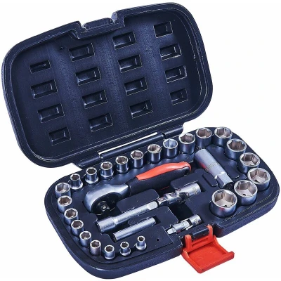 General description The 30pc 1/4' & 3/8' Socket Set is a comprehensive tool kit designed for various automotive and mechanical tasks. It includes a range of sockets and accessories, all conveniently stored in a blow-moulded case for easy organization and transport. Technical specifications Contents: 1 x 1/4"-3/8" drive ratchet handle 1 x 1/4" drive universal joint 1 x 3/8" drive universal joint 1 x 3/8" x 3" extension bar 1 x 3/8" x 5/8" spark plug socket 1 x 1/4" x 8mm adaptor 9 x 1/4" drive sockets: 5, 6, 7, 8, 9, 10, 11, 12, 13mm 15 x 3/8" drive sockets: 8, 9, 10, 11, 12, 13, 14, 15, 16, 17, 18, 19, 20, 21, 22mm Supplied in a blow-moulded storage case