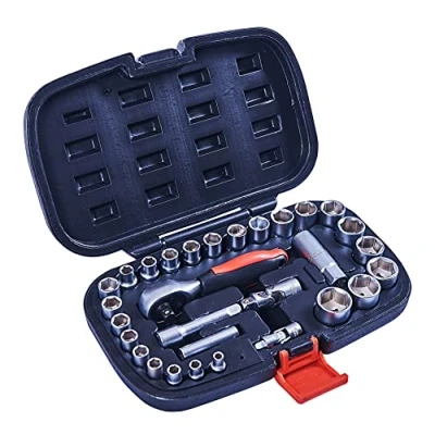 DURABLE: This 30 piece 1/4" and 3/8" socket set is made from strong chrome vanadium steel for durability CONTENTS: The versatile set includes a dual drive 1/4" and 3/8" drive, 72 tooth quick release ratchet, 1/4" and 3/8" universal joints, extension bar, a spark plug socket, an adaptor and a wide selection of 1/4" and 3/8" drive sockets CARRY CASE: It is supplied in a sturdy, blow moulded storage case STORAGE CASE INCLUDED: Compact case for organised storage and easy portability MULTI-DRIVE: Compatible with 1/4" and other common drive sizes, Weight: 3.968320716 pounds, Manufacturer: DK Tools