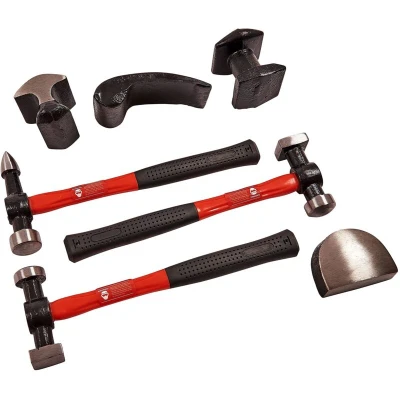 General description This 7PC Panel Beating Hammers Fibre Car Auto Body Panel Dent Repair Tool Kit is designed for professional quality repairs, making it ideal for DIY enthusiasts and professionals alike. It includes everything you need for effective body repair and panel beating. Technical specifications High-quality fibreglass shaft for durability Rubber soft grip for comfort Made from drop forged, heat treated steel Includes 3 fibreglass shafted panel beating hammers Includes 4 precision body repair dollies Other information Supplied in a blow moulded storage/carry case 3-year warranty included