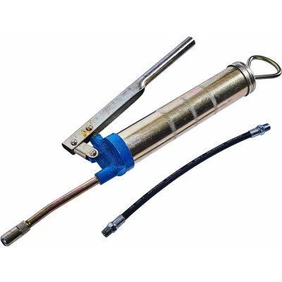 General description Supplied with a solid and flexible delivery tube, the 200Cc Grease Gun - J2300 is designed for efficient lubrication. It features a heavy-duty spring and plunger assembly, ensuring durability and reliability during use. Technical specifications Capacity: 200Cc Action type: Lever type Cartridge type: Standard gun cartridges Refillable cartridge: Yes