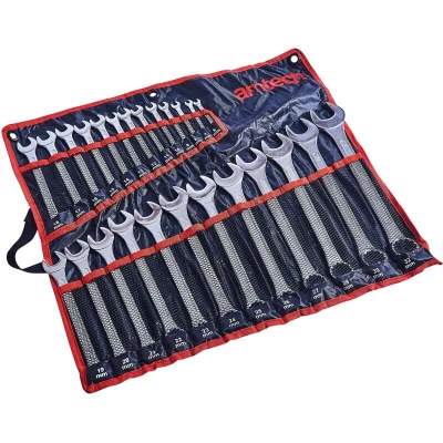 Lifetime Warranty Included DURABLE: This 25 piece combination spanner set is made from chrome vanadium steel, fully drop forged, hardened and tempered with a mirror polish finish Sizes - 6,7,8,9,10,11,12,13,14,15,16,17,18,19,20,21,22,23,24,25,26,27,28,30,32mm POPULAR SIZES: The set includes popular sizes between 6mm - 32mm and comes in a handy storage wallet
