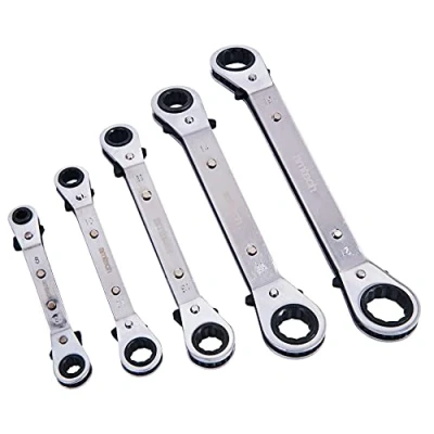 DURABLE: This 5 piece offset ring ratchet spanner set is made from chrome plated, drop forged steel for durability IDEAL FOR CONFINED SPACES: The 25° offset design makes these spanners ideal for hard to reach nuts and bolts in confined spaces 10 SIZES: The set includes sizes: 6mm x 8mm, 10mm x 12mm, 11mm x 13mm, 14mm x 17m and 19mm x 21mm COMPACT FORMAT: Conveniently sized for storage in toolboxes and cabinets TRADE READY: Suitable for both home users and professional tradespeople, Weight: 0.220462262 pounds, Manufacturer: DK Tools