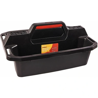 General description Durable impact resistant polypropylene tool storage tote tray featuring two deep compartments and perforations for tools. It includes an ergonomic carry handle, making it easy to transport. This tote is excellent for storing all kinds of tools, fixings, and fasteners. Technical specifications Material: Impact resistant polypropylene Dimensions: 49.6 x 33.6 x 22.7 cm Compartments: Two deep compartments