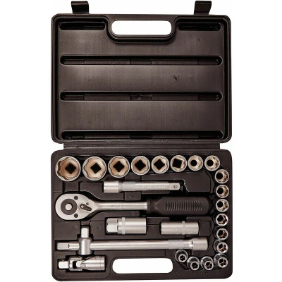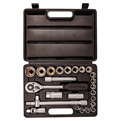 The heavy-duty DIY socket set is an essential tool kit designed for mechanics and DIY enthusiasts alike. This comprehensive 25-piece set is crafted from durable chrome vanadium steel, ensuring it can withstand the rigours of various applications, from mounting TVs with lag bolts to tackling vehicle maintenance. The satin chrome plating not only enhances the durability of the tools but also provides a sleek finish that is easy to clean and maintain.