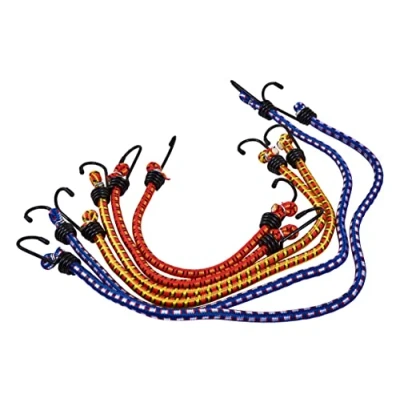 ManoManoGeneral description Assorted bungee cords are versatile and durable, perfect for securing items during transport or storage. This set includes a variety of lengths to accommodate different needs. Technical specifications Material: Vinyl coated steel hooks Set includes: 2 x 12" (30cm), 2 x 18" (45cm), and 2 x 24" (60cm)