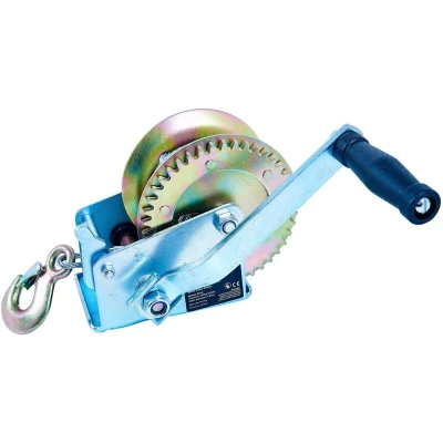 General description This 1200lb manual operation boat winch is designed for various applications, including pulling small boats onto trailers, positioning caravans, and securing trailers for storage. It is also suitable for quads, off-roading, and karting, provided the pull requirement does not exceed 1200lbs (approximately 550kg). Technical specifications Capacity: 1200lbs (550kg) Cable length: 10m Cable diameter: 4.8mm Material: Fully galvanized zinc plated heavy gauge for strength and durability Installation Five slots in the base for easy mounting in multiple positions Usage Ideal for pulling small boats onto trailers Can be used for positioning caravans and trailers Suitable for quads, off-roading, and karting Other information Includes a 3-year warranty Features smooth ratchet action with a sure-grip crank handle and locking mechanism