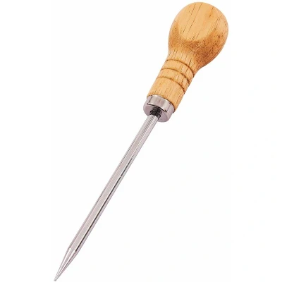 General description The 4' Bradawl features a hardened and tempered high carbon steel blade, making it durable and effective for various tasks. Its metal shaft extends through the wooden handle, ensuring stability and strength during use. This tool is ideal for starting holes, scribing, pinching holes, and aligning materials.